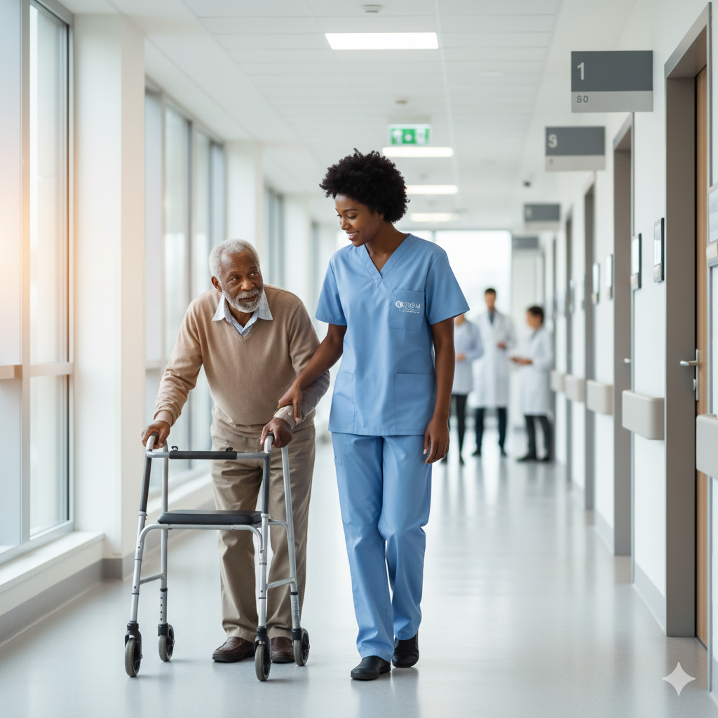 Certified nurses offering 24/7 companionship, monitoring, mobility support, and hospital escort services within Uganda and abroad.